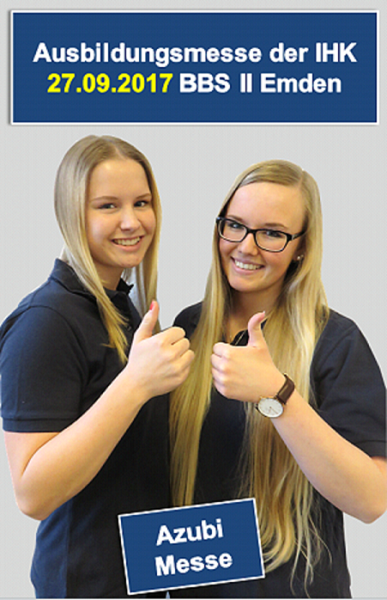 Am 27. September 2017 findet wieder die Ausbildungsmesse der Industrie- und Handelskammer für Ostfriesland und Papenburg (IHK)  an den Berufsbildenden Schulen II (BBS II) in Emden  statt. Die IHK richtet die Azubimesse gemeinsam mit den Wirtschaftsjunioren und der Stadt Emden aus.