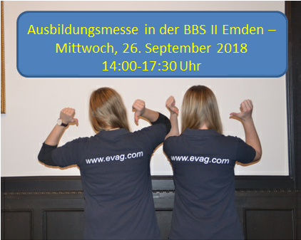 Am 26. September 2018 findet wieder die Ausbildungsmesse der Industrie- und Handelskammer für Ostfriesland und Papenburg (IHK) an den Berufsbildenden Schulen II (BBS II) in Emden statt. Die IHK richtet die Azubimesse gemeinsam mit den Wirtschaftsjunioren und der Stadt Emden aus.