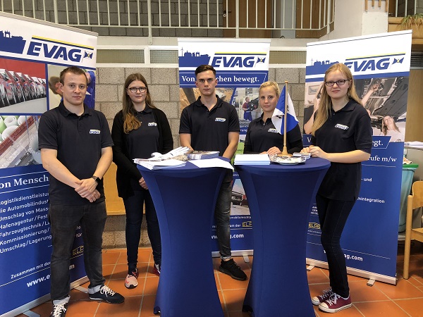 Auch die EVAG/ELAG war mit einem Stand vertreten. Die Auszubildenden Johannes Drewes, Julia Jacobs, Klaas Ukena und Mareke Wiards wurden in diesem Jahr von unserer Mitarbeiterin der Abteilung Managementsysteme, Christin Thiele, begleitet. Gemeinsam stellten wir uns den Fragen der Besucher und gaben ihnen einen Einblick in unsere Ausbildungsberufe.